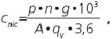 где cnic – концентрация никотина, мг/м3; p – количество курящих, %; n – число сигарет, выкуриваемых в час; g – среднее содержание никотина в сигарете – 1–2,5 мг/сигарета; A – площадь, приходящаяся на одного человека; qv – расход воздуха, л/(м2 • с).