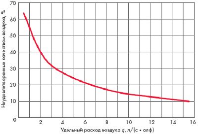 При удельной интенсивности вентиляции 1,84 л/(с • олф) количество лиц, неудовлетворенных качеством воздуха, равно 47 %.